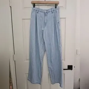 Uniqlo Drapey Pleated pants in light wash lightweight denim size small.