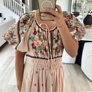Anthropologie blush Floral Maxi Dress with Ruffle Sleeves size M