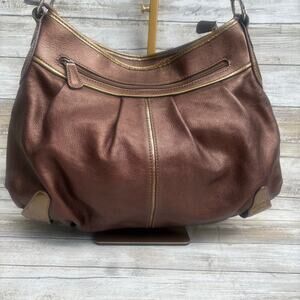 Brighton Purse Hobo Shoulder Bag Bronze Gold Metallic Leather Braided Strap