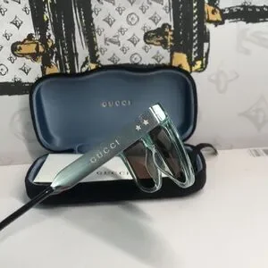 Elevate your accessory game with these authentic Gucci sunglasses. The GG0976S 002 features a sleek green mint acetate frame paired with brown lenses in a modern square silhouette. Crafted in Italy, these sunglasses offer both luxury and functionality.