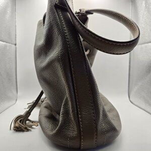 Brighton Gray Pebbled Leather Drawstring Bucket Purse with Shoulder Strap