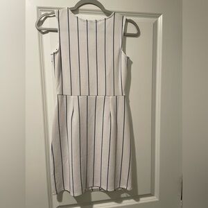 Derek Heart White and Blue Striped Midi Dress with Gold Accents
