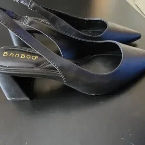 Chic black slingback heels by BAMBOO. Sleek design for versatile wear.