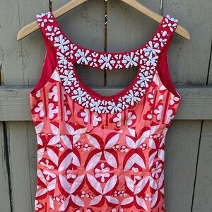 Nanette Lepore Beaded Floral Dress Tropical Tiki Hawaiian Vacation Vibes Sz 2