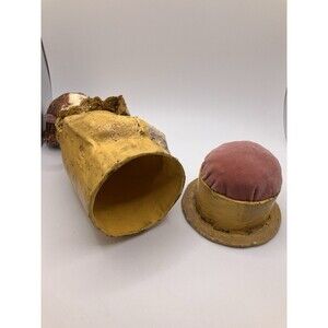 Mid Century Pin Cushion Antique Head Folk Art Paper Mache Sergios Mexico - READ