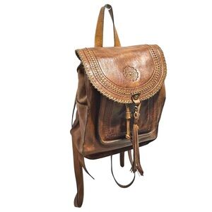 Patricia Nash Jovanna Distressed Cognac Tooled Italian Leather Tassel Backpack
