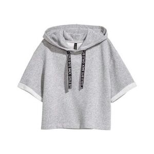 🏷️ 4/$25 H&M Grey Crop Hooded Sweater Short Sleeve Top