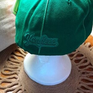 Classic Yankees cap in vibrant green. Features iconic logo and collectible patches.