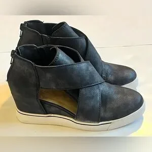 Maurices Gloria Open Side Wedge Women's Black Sparkle Sneakers Size 6.5