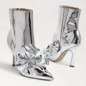 NEW Sam Edelman Esmae Stiletto Ankle Booties Silver Pointed Toes Size 6.5