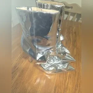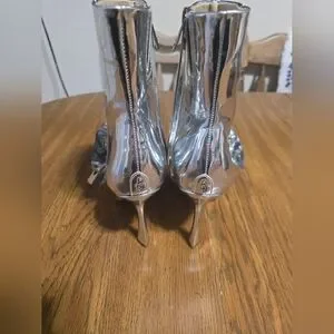 Step out in style with these stunning silver high heel ankle boots. Perfect for adding a touch of glamour to any outfit.
