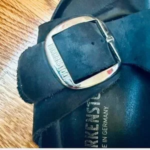 Birkenstock Dark Suede Sandals with Silver Buckle