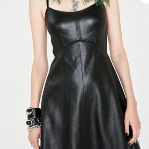Sleek black mini dress. Spaghetti straps. Perfect for a night out.