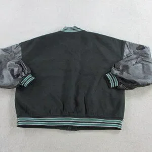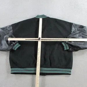 Boohoo PU Sleeve Oversized Varsity Jacket Womens US 2 UK 6 Black Green NWT NEW