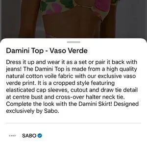 Sabo Skirt Australia Damini Crop Top in Vaso Verde