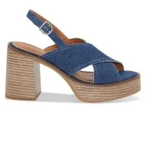Perfect staple shoe for all your outfits, denim always compliments them. Buckle adjustable sling backs, crisscross front and a 3&1/2” stacked heel with a 1” platform.
