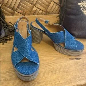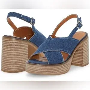 NWOT Lucky Brand Navy Denim 1 Platform Delmie High Heel Sandal Size 9