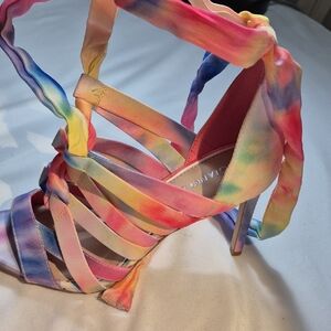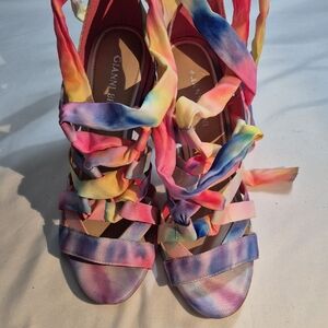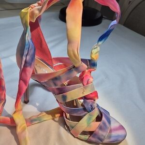Vibrant multicolor Gianni Bini heels with strappy design. Perfect for a bold and elegant look. Dressing in style.