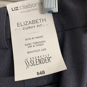 Beautiful pair of dress pants that are new with tags. The color is called "Charcoal Heather". These pants are a curvy fit. Bootcut leg. Secretly slender cut. Size 12. Material is 62% polyester, 33% rayon, 5% spandex. The inseam length is 32". Smoke free/pet free home.