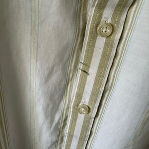 In good condition, with what I believe is a marker stain and a small blemish near the buttons. Shirt is very light weight and see through. Perfect for a day at the beach