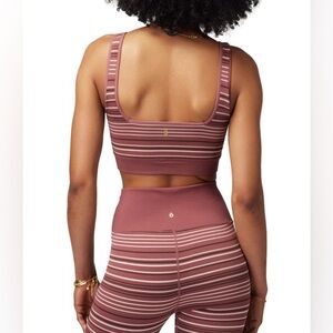 SPIRITUAL GANGSTER || Lena Seamless Sports Bra in Washed Burgundy Stripe - SZ M/L
