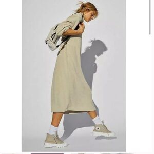 NWT Chic with a touch of cool, this effortless maxi dress from FP Beach collection is featured in a soft knit fabrication with mock cowl neck and back slit feature for added shape in a slouchy, oversized silhouette. Dropped dolman sleeves Effortless pull-on style Back slit feature FP Beach Effortless seaside designs for a laidback, throw-on-and-go approach to dressing.