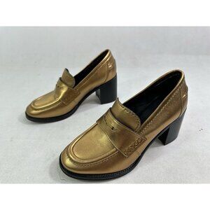 Veronica Beard Metallic Penny Loafer Block Heel Dark Gold Leather Womens 7