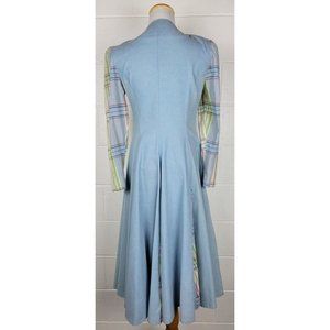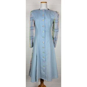 Condition: Very good condition with no holes or tears that I can see. I did note some light discoloration from age and wear. The second to last button on the bottom is also missing its plaid cap. This can be seen in the photos. Dated 1991 on the label. Nice vintage dress overall.