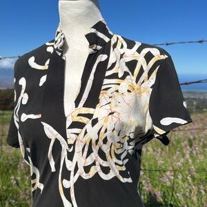 Iolani Vintage Y2K Black Floral Mum Short sleeve Top small