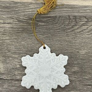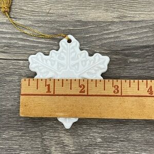 Vintage 2-Avon Christmas ornaments from 1980 and 1983 featuring ceramic wreaths with a Remembrance Snowflake pattern. The set includes two medium-sized round ornaments in white. These collectible items are part of the Christmas Remembrance collection, original and vintage in style, suitable for adult recipients. Made in the United States, these ornaments are a nostalgic addition to any holiday decor.