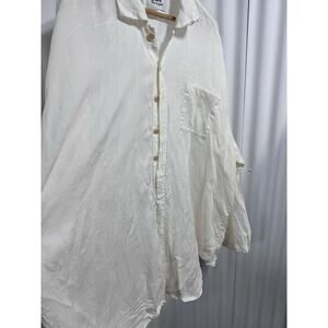 Vintage FLAX by Jeanne Engelhart Oversize Linen Shirt White Sz XL Long Sleeve