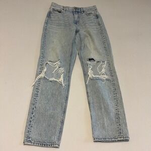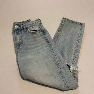 American Eagle light wash distressed mom jean denim 0