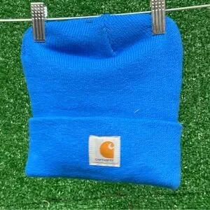 Bold blue beanie by Carhartt. Perfect for chilly days. Comfortable and trendy.