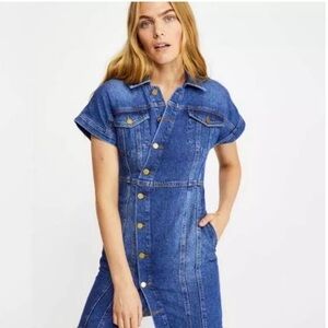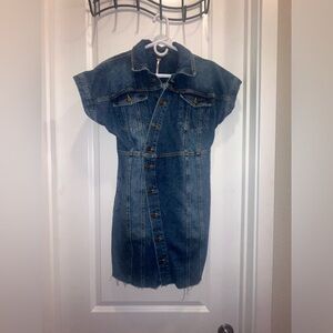 Free People Women’s The City Asymmetrical Blue Denim Jean Frayed Mini Dress