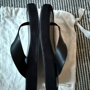 The Row Ginza Black Suede and Leather Platform Flip Flop Sandals size 40.5
