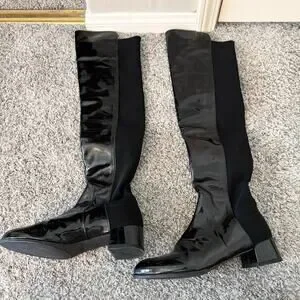 Stuart Weitzman Black Patent Leather 5050 Over the Knee Boots