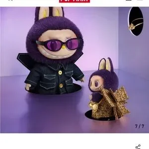 This is an adorable plush toy featuring charming bunny ears and a striking gold and black outfit. It's an excellent choice for collectors, as it comes unopened in its original box. This versatile item can serve as a stylish bag charm or be kept as a prized addition to your collection. It's sold out online, making it a sought-after treasure!