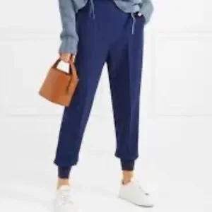 Stella McCartney's penchant for sporty codes is reflected by the elasticated waist and cuffs of these blue Julia trousers, which make them a comfortable everyday option. They're crafted from cady to a relaxed shape with side pockets, then defined by pressed creases for a considered note.