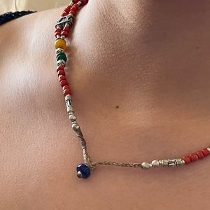 Handmade and hand beaded Tibetan Silver ethnic statement necklace with coral, lapis, turquoise and more. Wow piece! Will be energetically charged by a Reiki Master✨✨✨