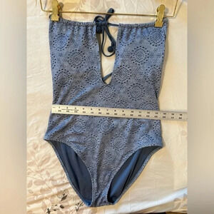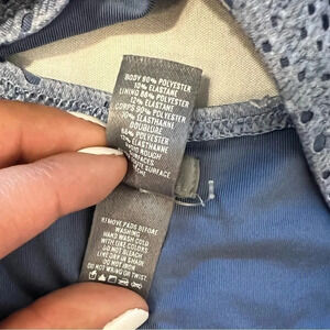 Aerie crochet one piece bathing suit crisscross back in baby blue size medium