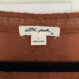 Ultra Pink Boho Batwing Top Brown Knit, Crochet Trim, Size Large