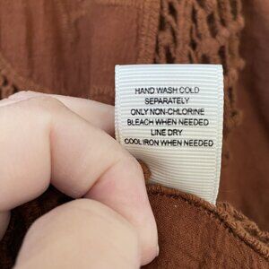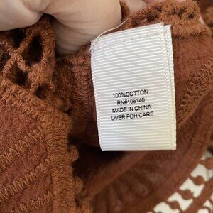Lightweight cotton knit with intricate embroidery and open-weave crochet trim, perfect for layering over a tank or cami.