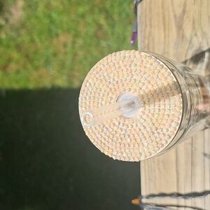 Handmade by me with a vinyl wrap and a bedazzled lid