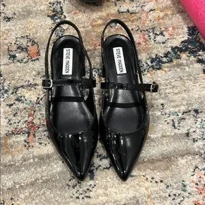 Chic black patent leather flats with adjustable strap. Sleek and stylish for any occasion. EUC purchased for NYC and worn once.