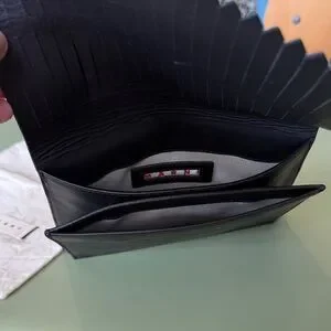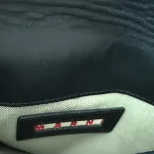 Chic black leather clutch by Marni. Features a minimalist design.