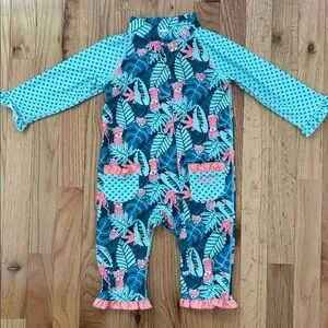 UV SKINZ BABY GIRL ONE PIECE LONG SLEEVE BATHING SUIT SUN AND SWIM 2T TIGER
