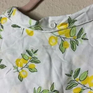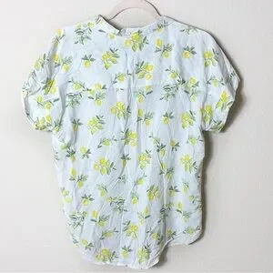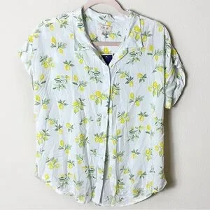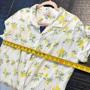NWT Per Se Lemon Button Down Short Sleeve Top White Yellow Lemon size Medium