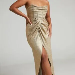 Showpo Gold Strapless Wedding Dress