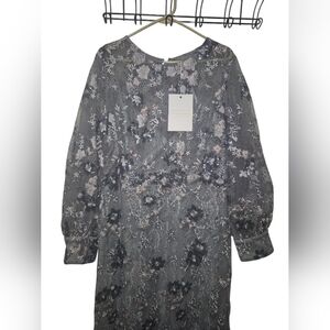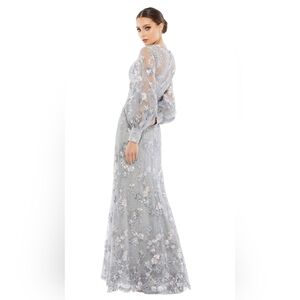 Mac Duggal # 67939 Gray Embellished Illusion High Neck Bishop Sleeve Gown NWT