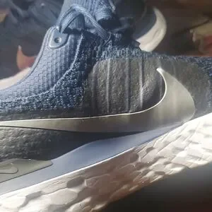 Navy blue running shoes with a textured design. Features a silver Nike swoosh.